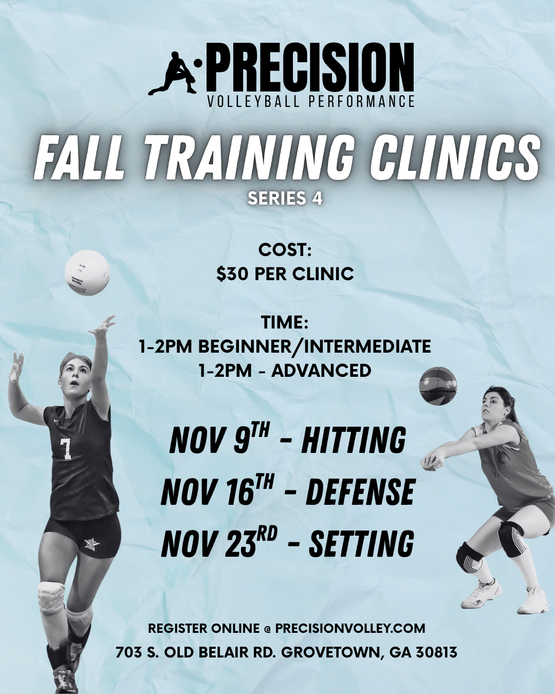 Please note that Precision Volleyball Performance, LLC will process a credit to your account if you are unable to make a scheduled Clinic/Private Lesson by using the following criteria. A written request via EMAIL must be sent NO LATER than 48 hrs before a scheduled Clinic/Private Lesson. Please send an email for a Credit request to: [email protected] and allow 1-3 business days for approved credits to be processed. If a credit Request is not received 48 hrs before a scheduled Clinic/Private Lesson, a credit will NOT be processed or given. Credits can be used for any future Precision Volleyball Performance Clinic, Private Lesson, or Camp.